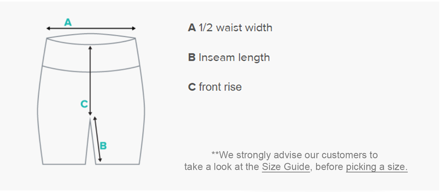 | Size | 1/2 Waist | Length | Front Rise |